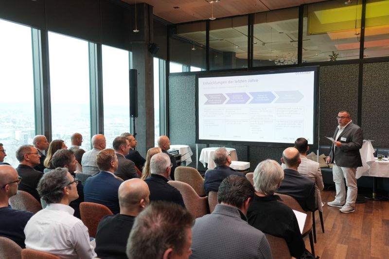 An diesem Dezembermorgen glänzte Zürichs höchstes Glashaus symbolträchtig für das Tagesthema: Glas. Hoch oben im Restaurant «Clouds» begrüsst Daniel Fuchs, Leiter von «GlassRep», die Gäste. Neben FLI-Vertretern waren auch Delegierte der Partnerfirmen Glas Trösch, Derendinger, Sika und Teroson anwesend; sie werden das Netzwerk mit Schulungen und Reparaturausrüstung unterstützen. Ziel des Anlasses war es, die FLI für eine verstärkte Steuerung von Glasschäden an die rund 120 qualifizierten Carrosseriepartner zu gewinnen. Fuchs skizzierte den Ablauf: Vorstellung von «GlassRep», vier Kurzreferate sowie ein Apéro Riche mit Raum für vertiefte Gespräche und Networking.